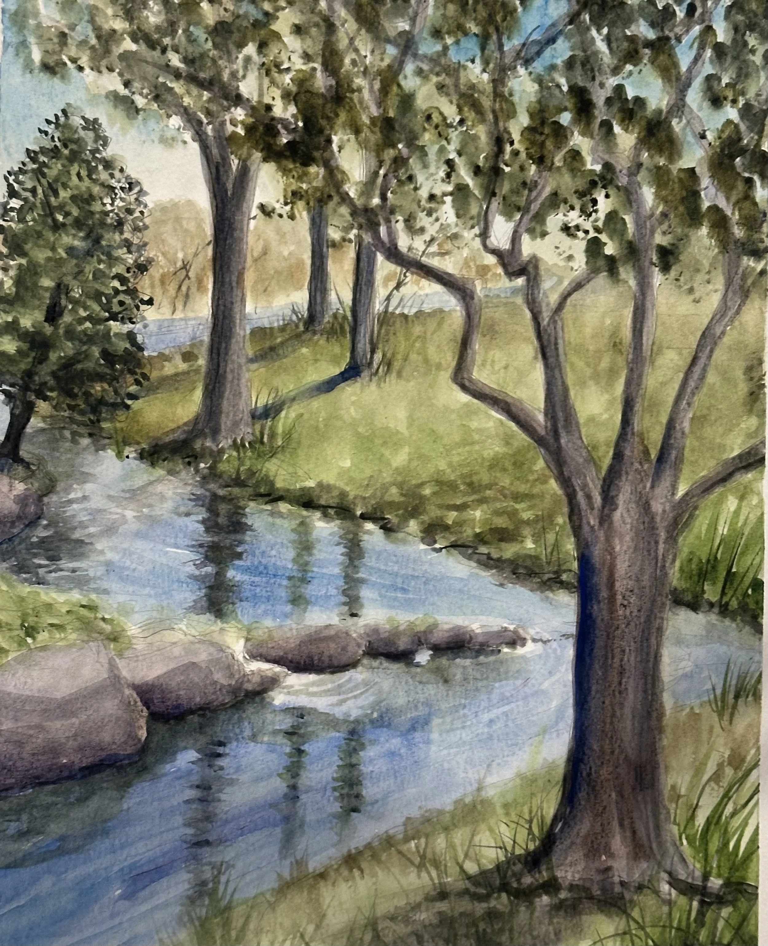 When it was finished, I sent her a photo of the painting. There was one tree she didn’t particularly like, but I was able to make adjustments to get it to a place where she liked it. I appreciated both the open communication of making the details of the painting “just right” for her and also the challenge of making a correction in watercolor.